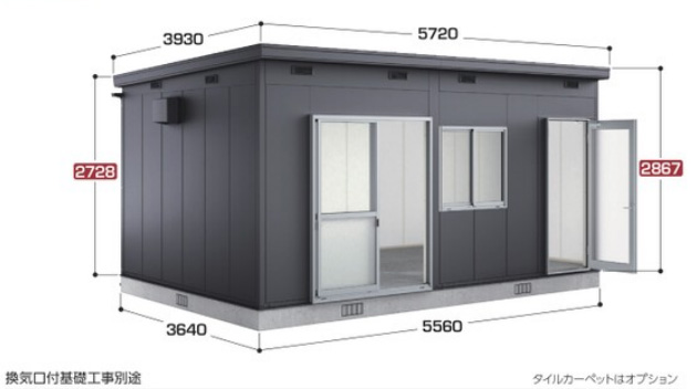 | 寸法 | 幅5560mm×奥行3640mm×高さ2867mm |